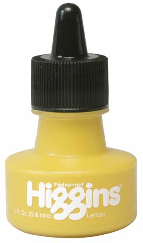 Higgins Pigmented Waterproof Drawing Inks - Vivid, opaque, lightfast colored inks. For use in all technical pens and in airbrush applications. May be diluted or blended. In 1 oz. bottles.