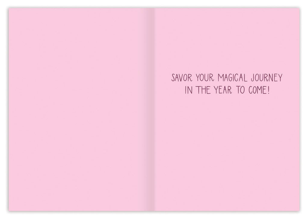 Inside verse: Savor your magical journey in the year to come! • Size: A6, 4.6" x 6.4" • Treatment: Gold foil • Illustrated by Carrie Shryock • Envelope color: White • Printed in the USA on 100% post-consumer recycled paper • Pre-priced • By default cards come without cello packaging. Please message us for cello options. About the artist: Carrie Shryock is an artist, illustrator, and a nature lover. She grew up on a farm in the heart of the Midwest, where she spent her childhood picking bouquets of wildflowers and exploring the wide-open prairie under a big cloud filled sky. She finds endless inspiration in the beautiful complexity of the natural world, and the colors of the changing seasons. A former elementary school art teacher, Carrie now works full time as an illustrator, utilizing a variety of media, both traditional and digital. She works from her home studio in Columbia, Missouri.