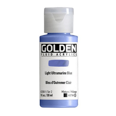 Fluids are created by loading an acrylic polymer binder with concentrated levels of quality pigments for a wide selection of permanent and light-fast colors. No fillers or extenders are added to achieve the desired consistency, nor is the fluid quality achieved with additional water. GOLDEN Fluid Acrylics have the same pigment load as the Heavy Body Acrylics, but in a viscosity similar to heavy cream. Fluids allow for smooth flowing applications while retaining color intensity, tinting strength, film integrity, and adhesion.