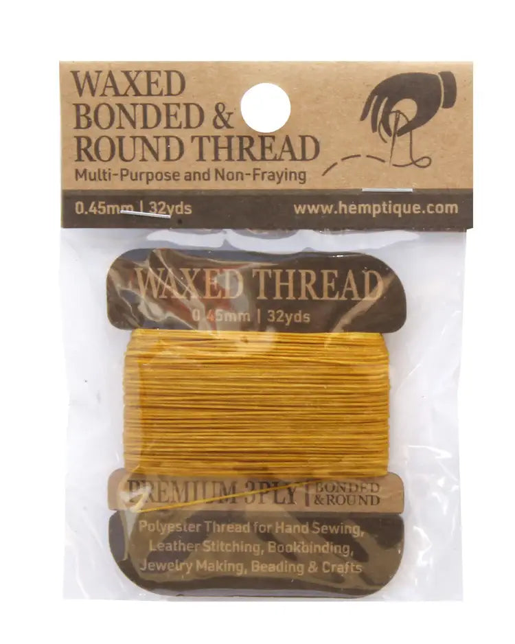 0.45 mm Multi-Purpose, Non-Fraying Polyester Thread, perfect for outdoor sewing projects such as fixing patio furniture, awning repair, and sewing canvas boat covers. Made from high-tenacity polyester fiber, this thread is non-fraying and incredibly strong. Featuring bright and vibrant colors that won't fade or bleed. Bonded polyester thread is UV resistant making it perfect for outdoor applications. Premium Quality 100% Polyester Waxed Coating 0.45mm Thick 32yds. Leather Stitching, Boat Covers, Canvas Awnings, Upholstery Repair, Outdoor furniture & more. * Due to the manufacturing process, thread may slightly vary in color and length. **The product images shown depict the colors as accurately as possible but due to monitor differences, colors may be slightly different.