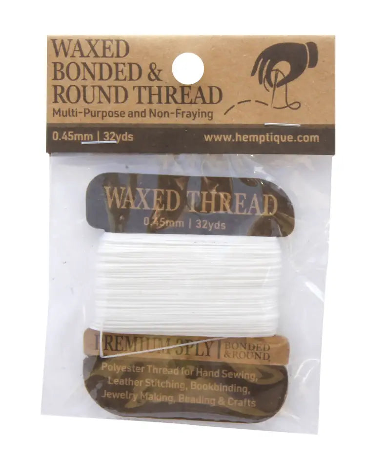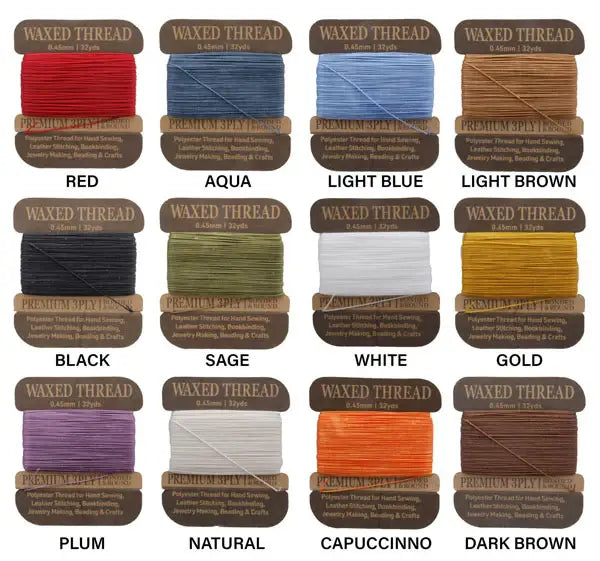 0.45 mm Multi-Purpose, Non-Fraying Polyester Thread, perfect for outdoor sewing projects such as fixing patio furniture, awning repair, and sewing canvas boat covers. Made from high-tenacity polyester fiber, this thread is non-fraying and incredibly strong. Featuring bright and vibrant colors that won't fade or bleed. Bonded polyester thread is UV resistant making it perfect for outdoor applications. Premium Quality 100% Polyester Waxed Coating 0.45mm Thick 32yds. Leather Stitching, Boat Covers, Canvas Awnings, Upholstery Repair, Outdoor furniture & more. * Due to the manufacturing process, thread may slightly vary in color and length. **The product images shown depict the colors as accurately as possible but due to monitor differences, colors may be slightly different.
