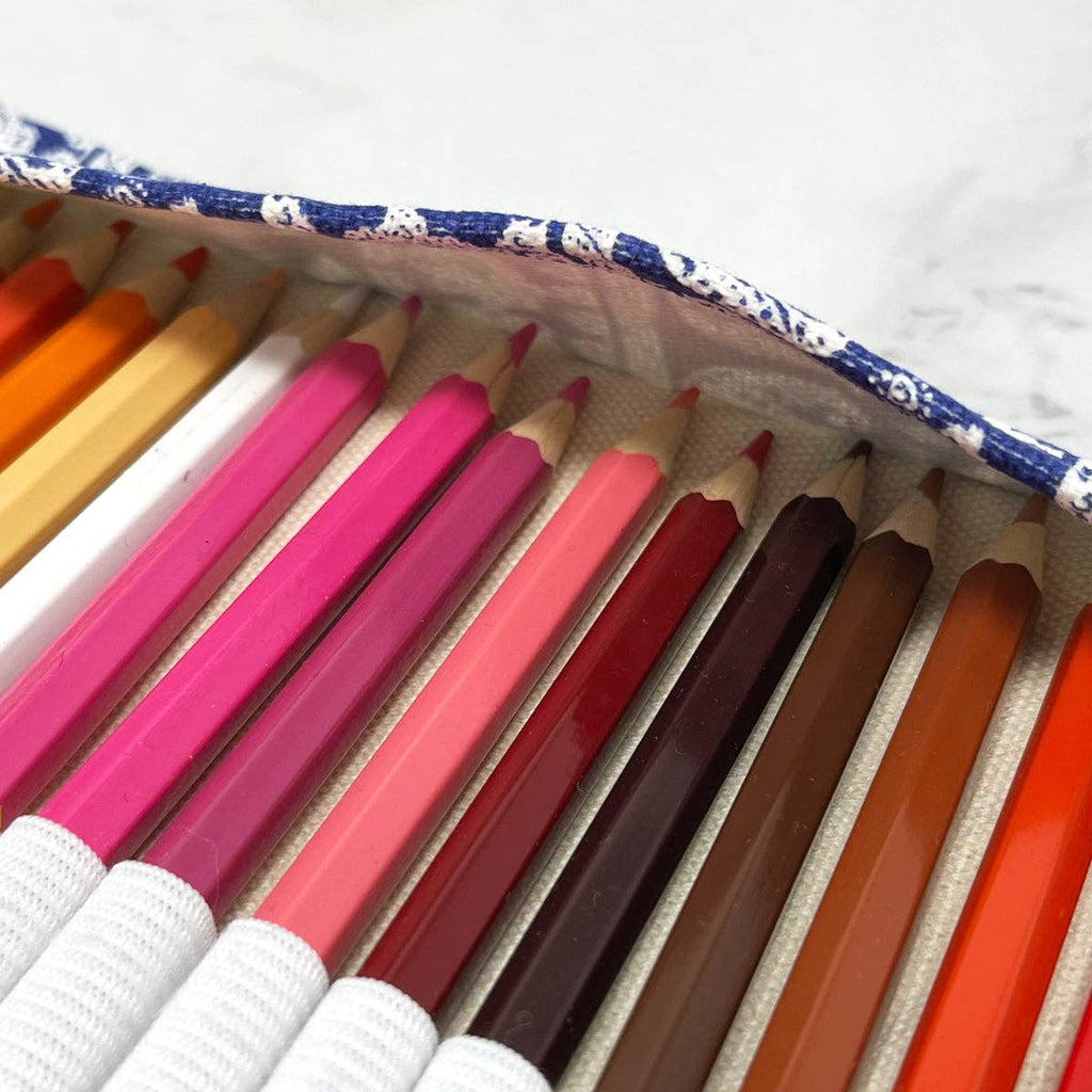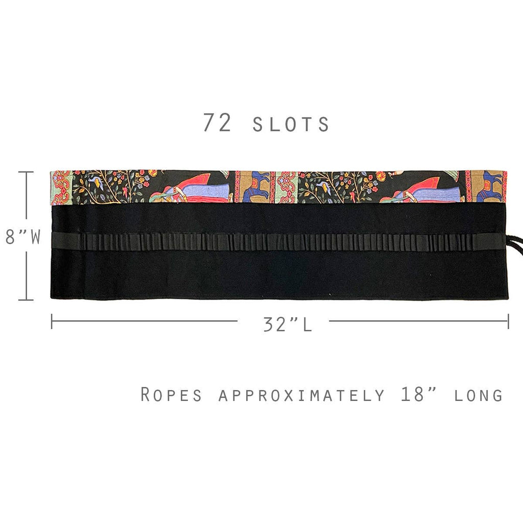 Take your coloring tools on the go with these pencil roll organizers. Each organizer comes with 72 slots that are able to firmly hold colored pencils, markers, gel pens, and brushes in place without sliding out. There are even slots at each end for erasers. A flap on one side of the organizer covers and protects the pencil tips from breakage. Easily rolls up and compactly fits in your backpack, suitcase, or tote bag. Made with durable canvas that washes easily. Available in various designs to inspire your inner artist. * INCLUDES: One pencil roll with 72 slots. Colored pencils not included. * FEATURES: Take your colored pencils with you on the go. * DIMENSIONS: 32”L x 8”W. Ropes approximately 18” long. * MATERIAL: Durable canvas, nylon ropes.