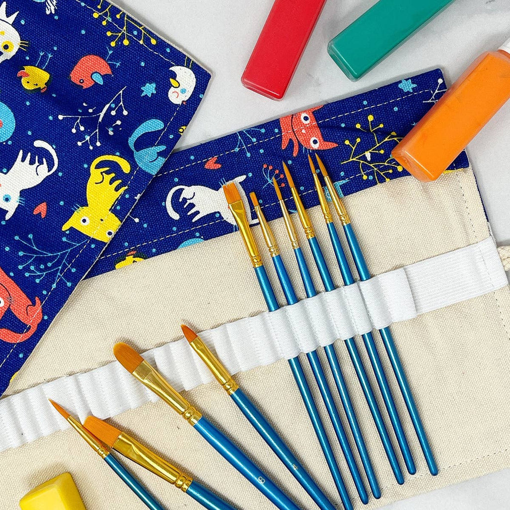 Wrapables Pencil Roll Organizer, Wrap Pouch (72 slots): Cats & Birds